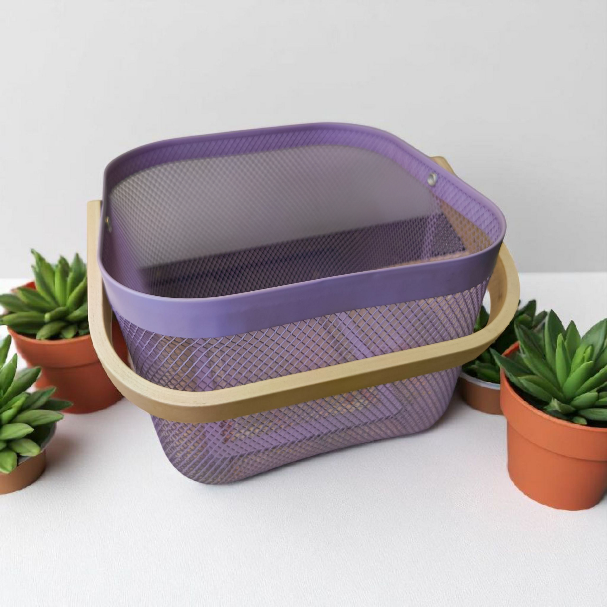 The Mesh Carry Premium Basket in Purple combines durability with lightweight design, making it ideal for versatile carrying needs. Its breathable mesh construction ensures visibility and ventilation, while the sturdy handles provide comfortable transport. Perfect for organizing, shopping, or storage, this basket offers practical functionality with a sleek, modern look.